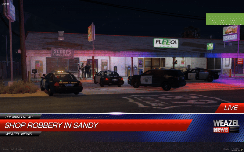 In der Nacht kam es um 01:33 Uhr zu einem Überfall auf ein Geschäft an der Postal 4025, Route 68 in Sandy Shores.